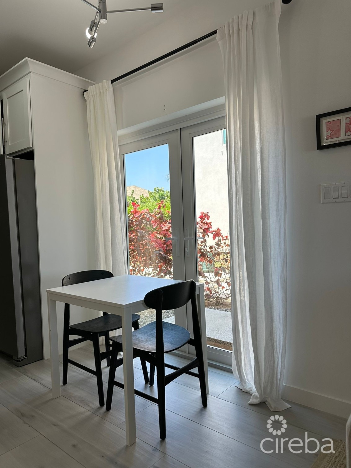 LA PAIDION is a beautifully maintained, like-new 1-bedroom, 1-bathroom condo for rent in the heart of West Bay, just minutes from the exclusive Shores community. This ground-floor end condo lends modern design with everyday functionality, offering a quiet retreat in one of Caymans most desirable residential areas. With serene garden views and thoughtful finishes throughout, this residence presents a refined yet approachable living experience.