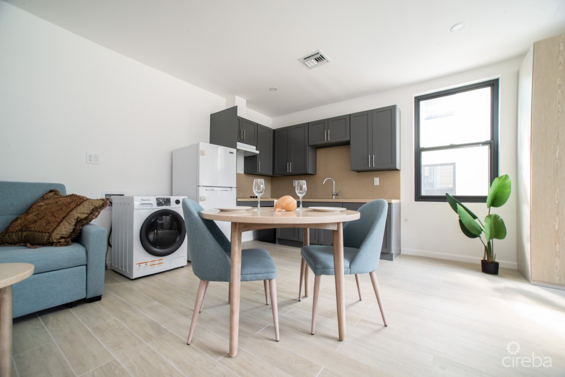 These thoughtfully designed apartments are built with accessibility and quality in mind, meeting ADA standards and featuring eight designated accessible parking spaces, plus two additional spaces per unit. With only 32 units across four buildings, each with eight apartments, the complex maintains a comfortable, open feel. On-site amenities include a swimming pool, deck, and clubhouse with male and female restrooms, outdoor bike storage, rinse stations for water sports gear, and even a fenced garden area for dogs. Each unit is constructed with durable concrete block and foam insulation, while bathroom walls are made from sheetrock. Built to hurricane standards and elevated 18 feet above the high water mark, the complex offers both security and peace of mind. Energy-efficient features such as solar panels and low-E windows help keep utility costs low. Inside each apartment, quality and functionality shine. The furniture package, included with each unit, features a sofa that converts into a bed with waterproof fabric, solid wood cabinets, and a safe for personal valuables. Quartz countertops shine through the kitchen . Bathrooms include grab bars, a shower chair, and are styled as wet rooms for easy accessibility. Each unit also includes a combined washer-dryer. For flooring, the apartments boast full-body porcelain tiles. Dont miss out on this opportunity!
