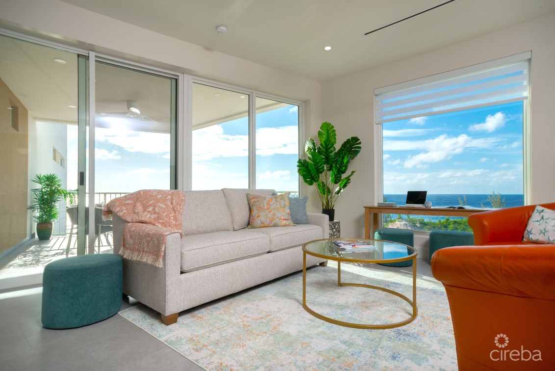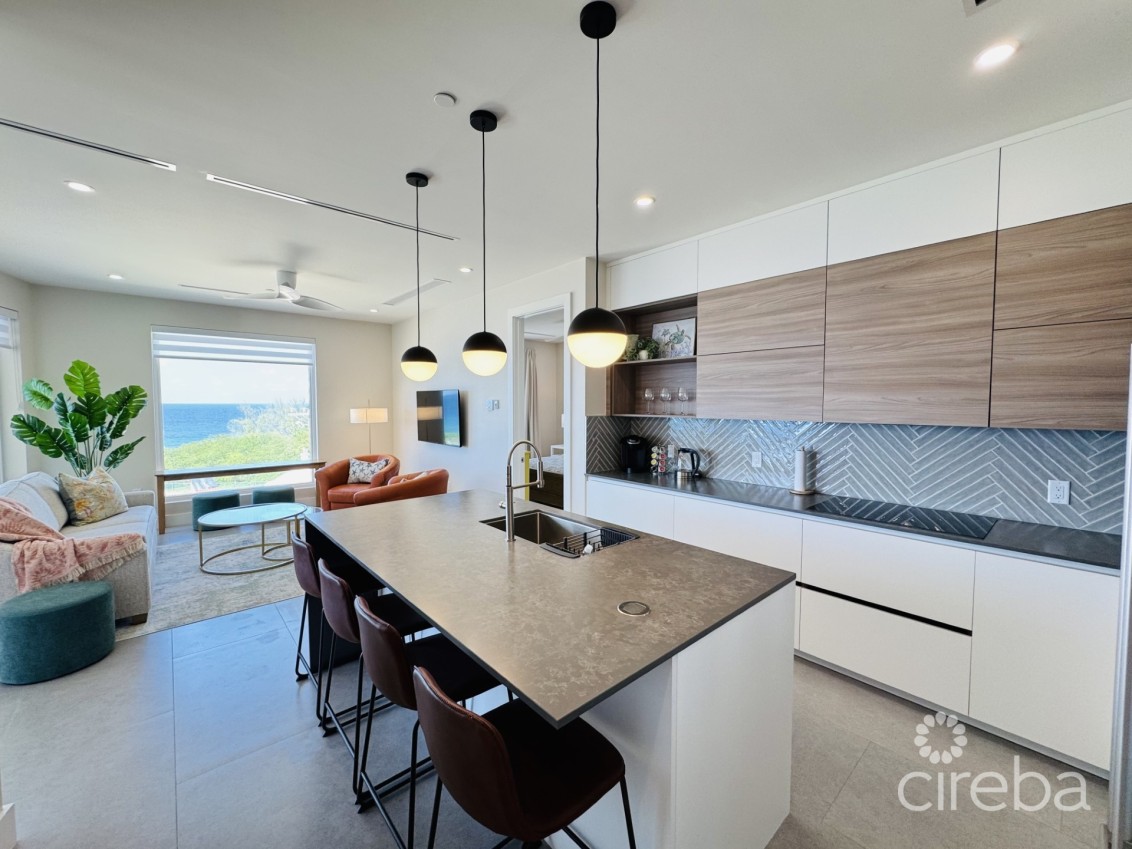 This newly completed three bedroom, three bathroom condo at Point West offers modern island living with a functional floor plan and direct ocean views. The home is fully move in ready, complete with linens, bedding, towels, and a fully equipped kitchen. An open plan living area flows seamlessly onto a private balcony, creating a bright and comfortable space for everyday living.