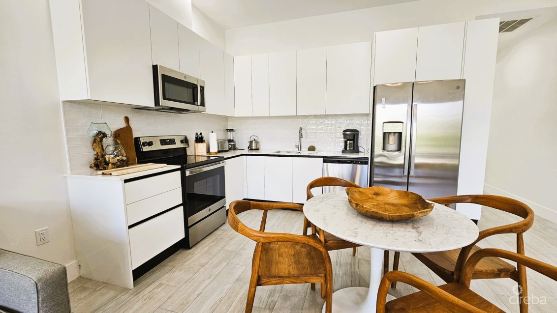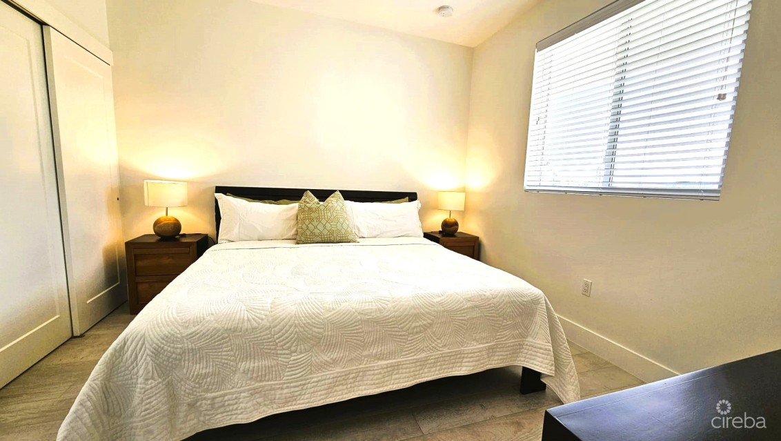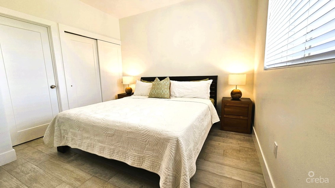 Residents enjoy a peaceful, well-maintained setting with access to a swimming pool, barbecue area, and ample parking. The location is just minutes from West Bay Public Beach and Fosters Supermarket, with Camana Bay only an eight-minute drive away, offering easy access to daily essentials and lifestyle amenities.