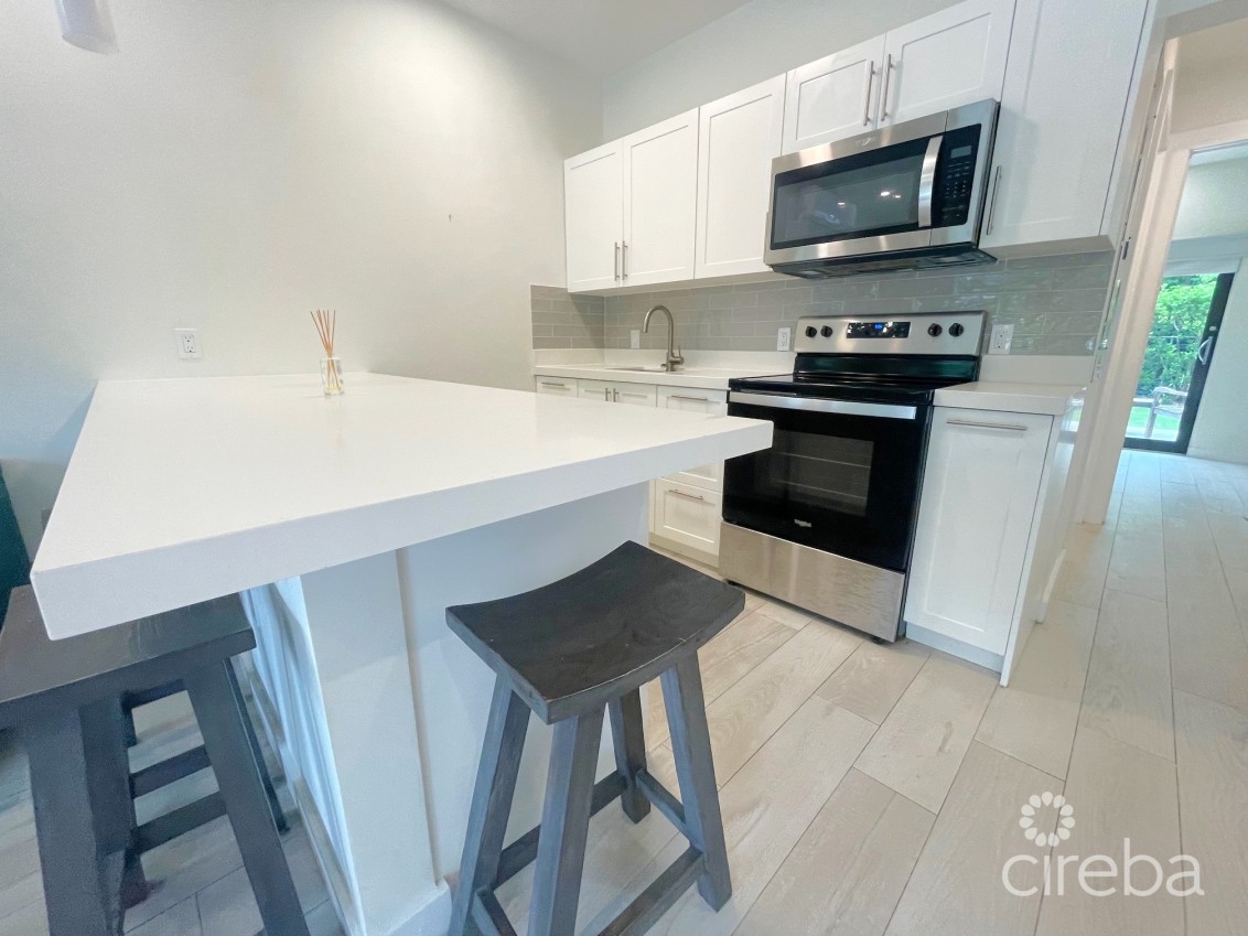 A modern and beautifully presented 1 bedroom apartment forming part of a gated complex in West Bay. Offering generous open plan living the apartment benefits from a private garden and a lovely communal swimming pool with BBQ. Conveniently located close to a number of excellent restaurants, the Turtle Centre, West Bay Beach and top dive sites. Available from the beginning of June, fully furnished.