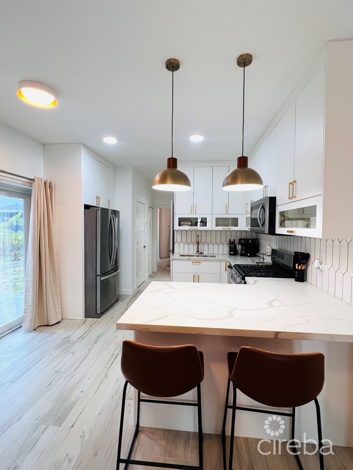 Welcome to La Paidion, a ground-floor unit offering one bedroom and one bathroom in the heart of West Bay, Cayman Islands. This beautifully decorated condo combines modern living with the convenience of being just 10 minutes from Camana Bay and the world-famous Seven Mile Beach.