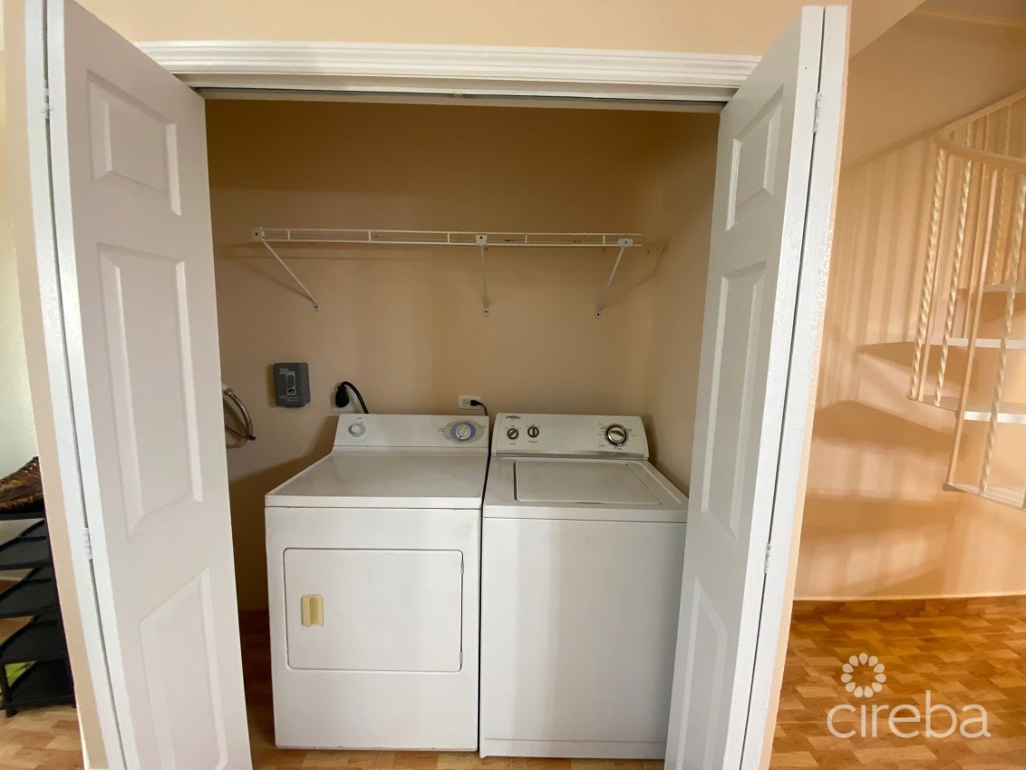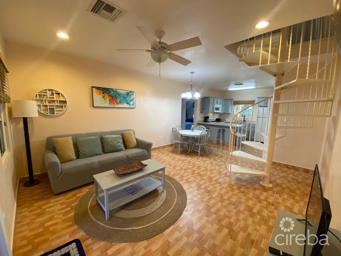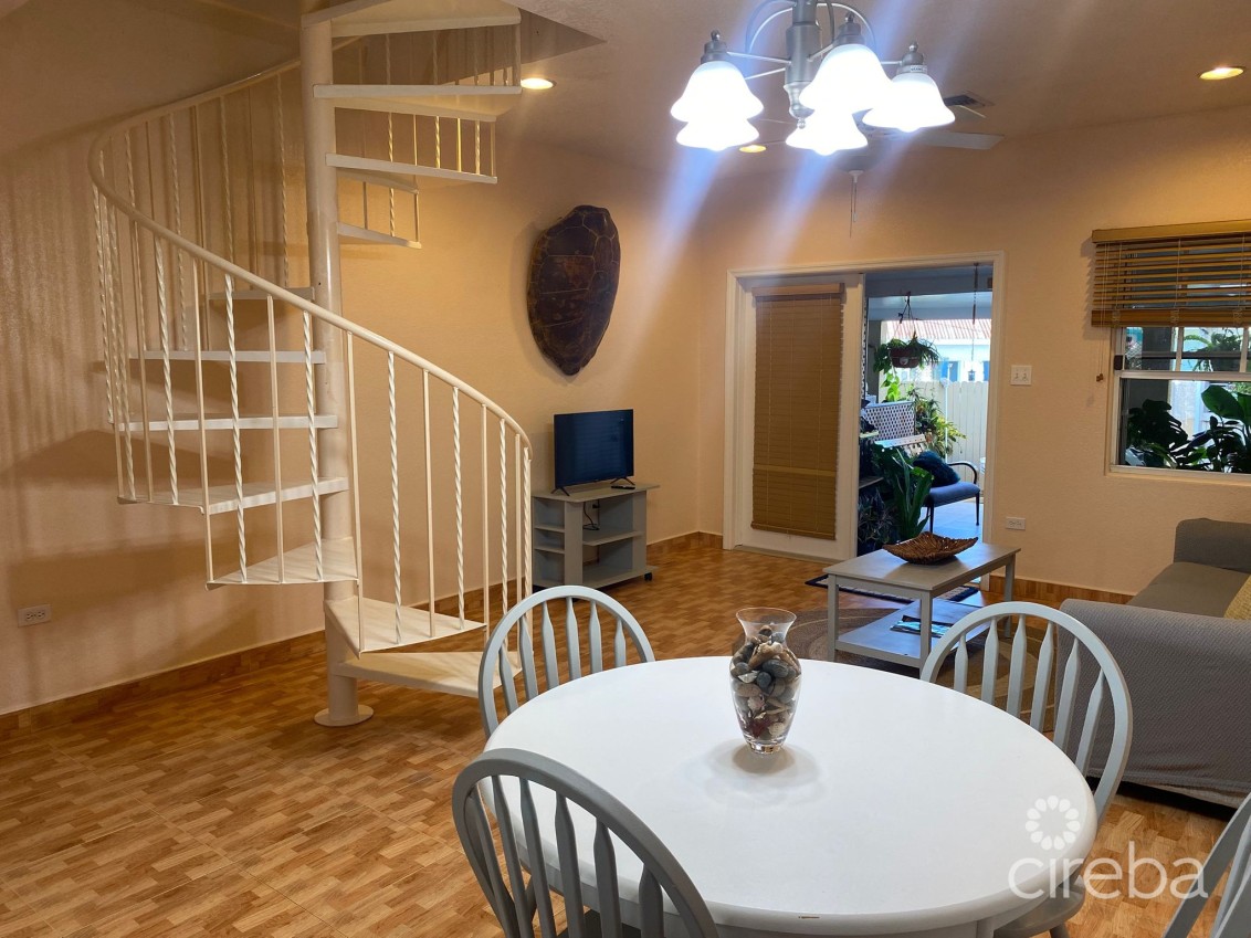 Beautifully maintained and fully furnished three bedroom, two bathroom townhome featuring an elegant spiral staircase leading to the upstairs bedroom. The bright open plan living, dining, and kitchen area is perfect for modern living, complete with gas stove, microwave, and ample cabinet space. In-unit washer and dryer included. Two dedicated parking spaces. Landlord provides access to a shared outdoor entertaining area with BBQ grill and dining seating beneath mature shade trees. Exterior guest powder room with toilet, urinal, and sink for tenant privacy when entertaining. Lushly landscaped tropical grounds with palm trees. Twelve-month minimum lease. Utilities separate. No pets, no children, no NAU/DFA. Welcome to your new home.