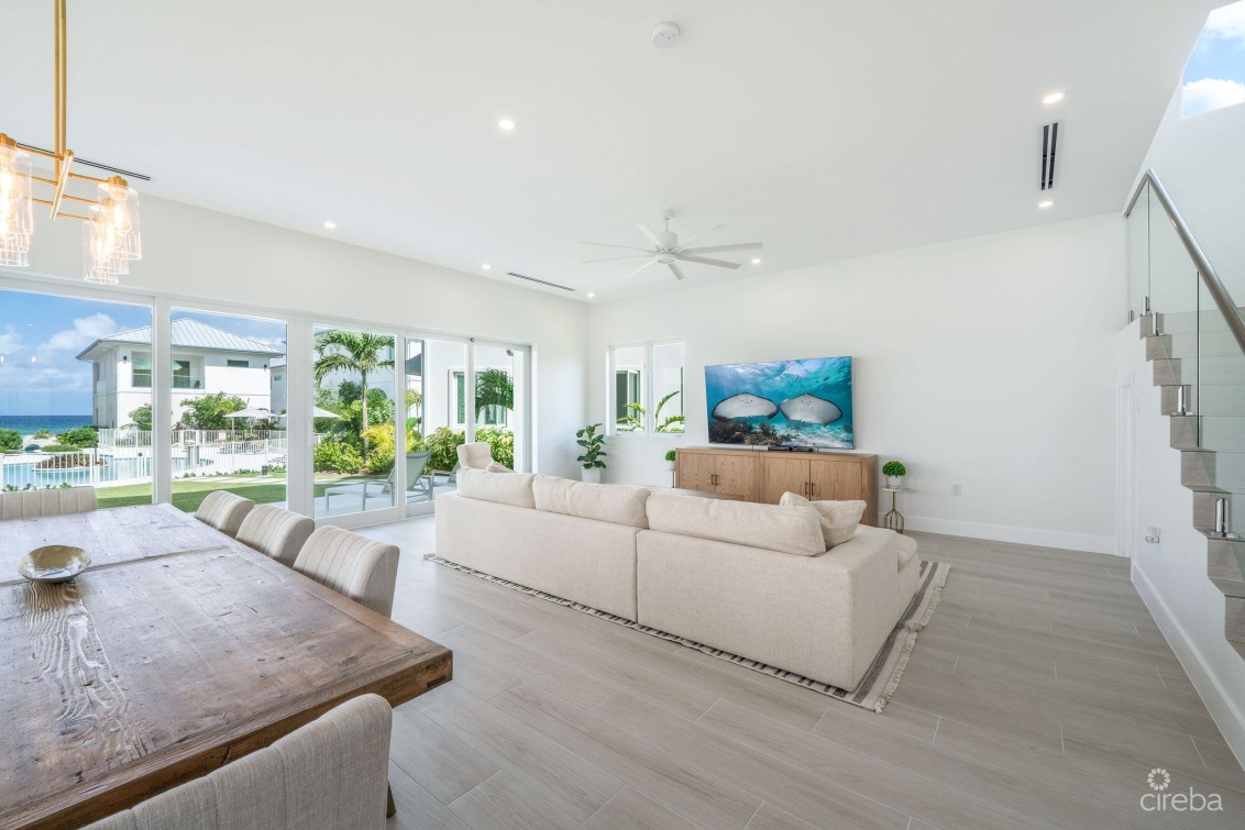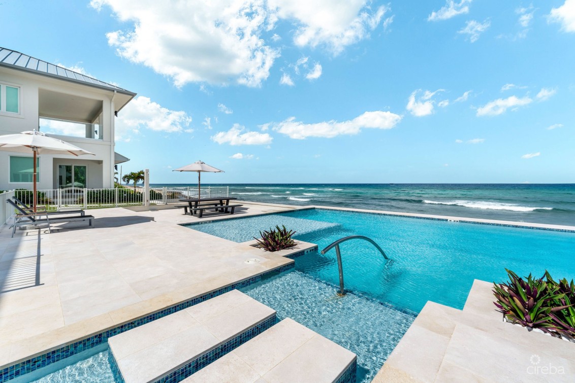 Direct ocean front resort style living in a unique detached home in Oceans 9, offering a rare opportunity to live in a fully managed and gated, oceanfront development. This home is turn key, fully furnished and ready to move into and includes 4 bedrooms , 4.5 bathrooms, plus garage. Bright open plan living room with ocean views, Kitchenaid appliances, dining area spilling out onto the top floor private patio, 10ft ceilings, 12ft above sea level, fully hurricane rated. Two dedicated parking spaces. Oceans 9 is situated on 2.3 acres of land with over 200 feet of North West facing beachfront, with a gated entrance and lush, stunning landscaping and two private pools connected by a lazy river to the ocean front pool. Communal outdoor kitchen with sunken lounge area, perfect for sunsets! Owners gym on site. A quarter mile further out, the drop off wall is considered one of the best scuba dive sites in the world. Arrange a tour today or call for more details